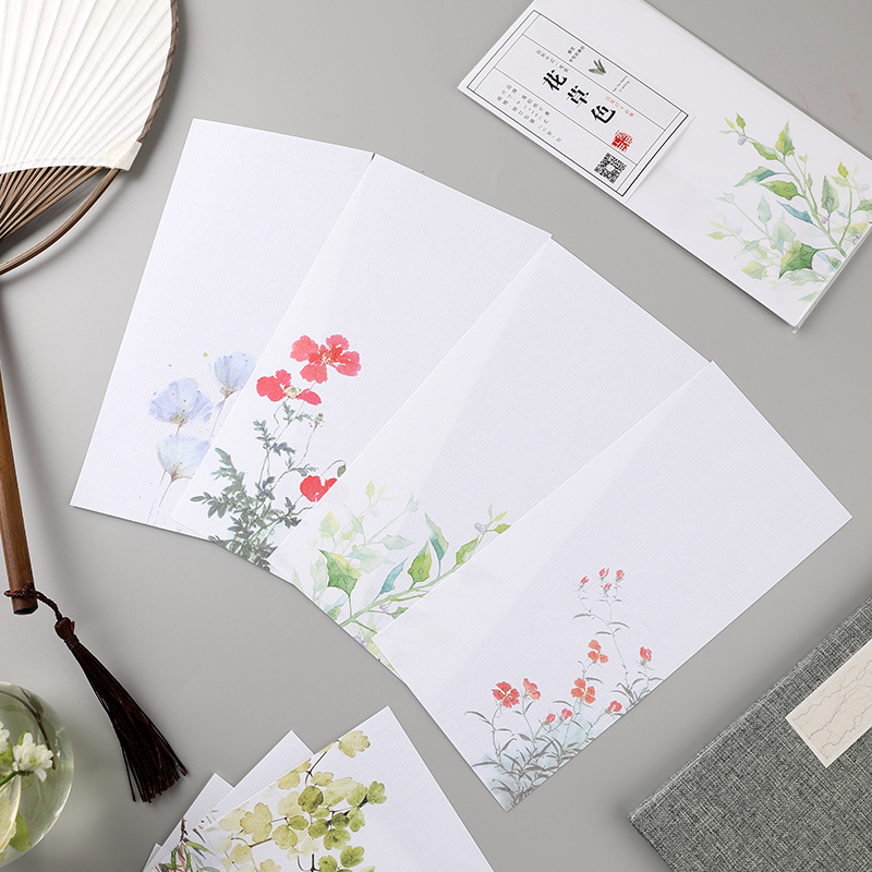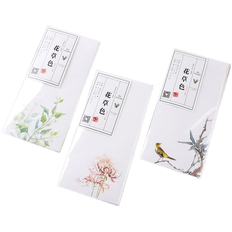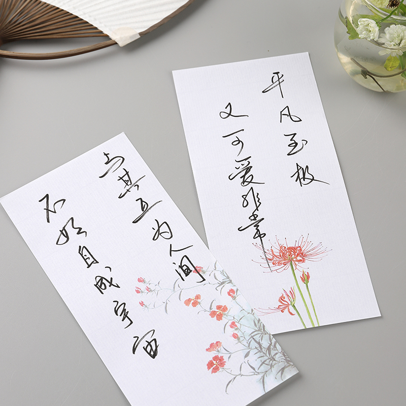 (handwritten) flower and grass color a letterhead letterhead plant ancient wind letterhead small frescoed three lines of letterhead and calligraphy 20 in