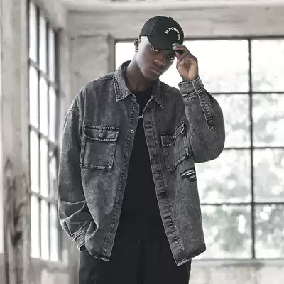 BD bodybuilding station denim shirt men wild casual trend retro handsome tooling denim jacket men loose large size