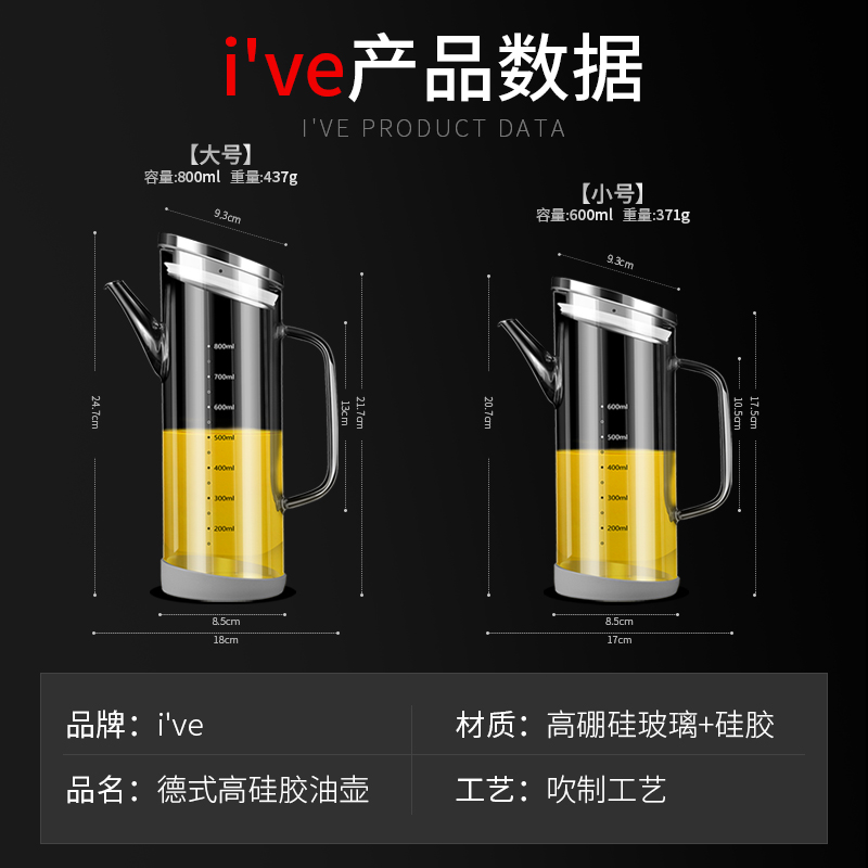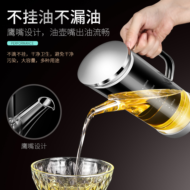 German ive glass oil pot thickened long mouth camellia stainless steel oil pot pot home kitchen oil filter pot does not leak oil