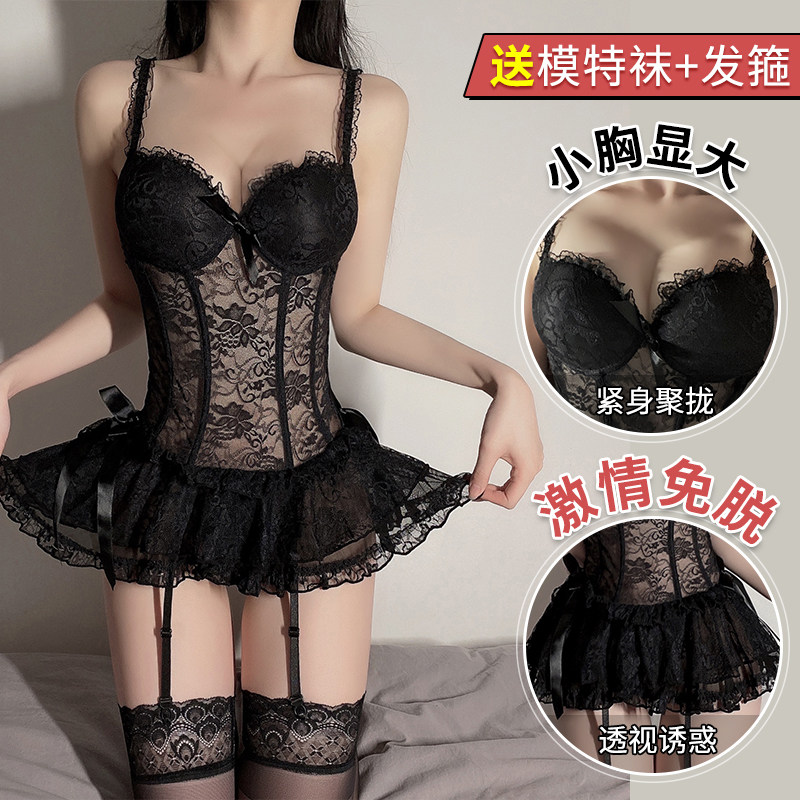 Black (steel bolted cotton pad waistcoat detachable garter belt * 2 T pants) model socks hair hoop Black (steel bolted cotton pad waistcoat skirt set) slender breifs 2 gift Black (steel Cotton