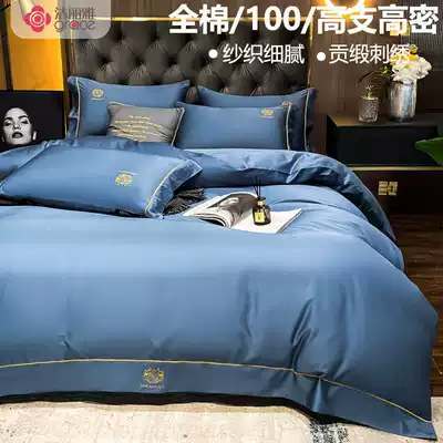 Jielia Bedding Four Piece Set Cotton Sheets quilt cover European Light Luxury Simple Hotel Bedding 4