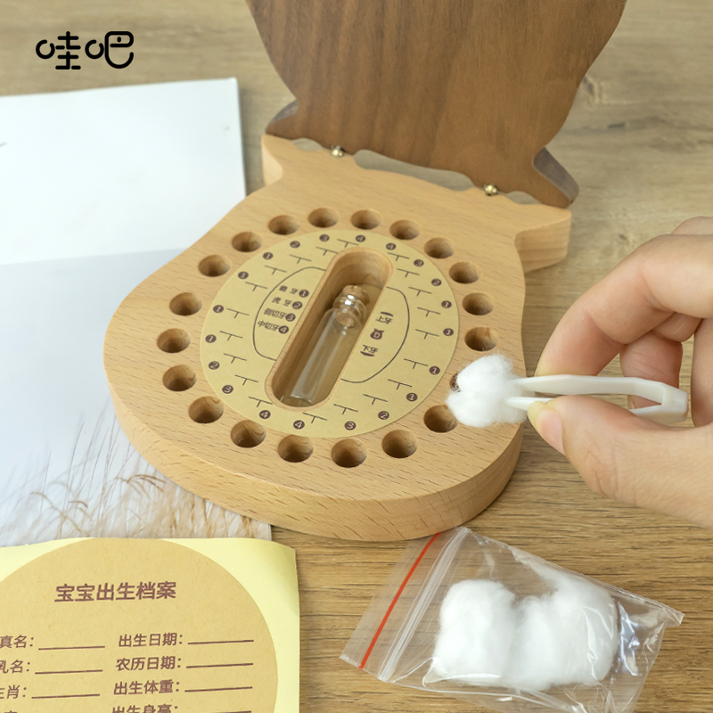 WOBO wow bar children's deciduous teeth box solid wood teeth storage commemorative boy and girl baby lanugo bottle preservation collection box