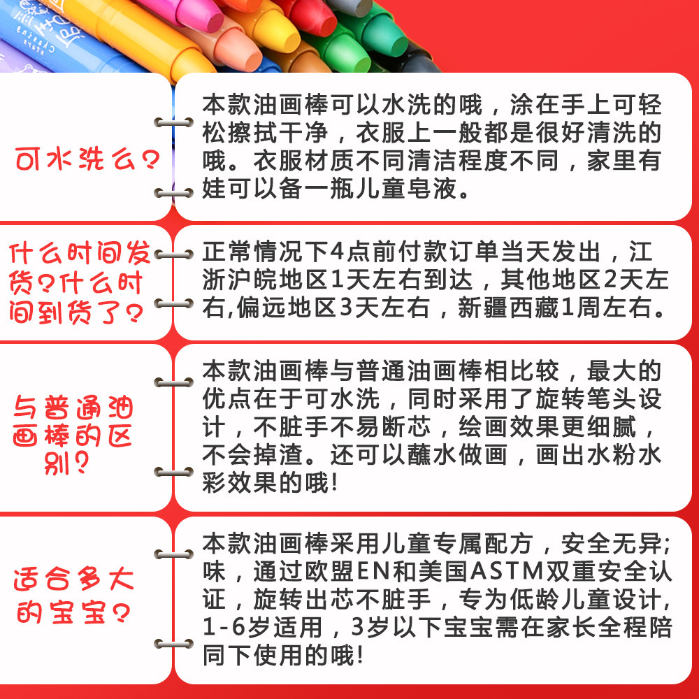 Eu EN and US ASTM certification, safe and non-toxic Washable, rotating core does not get dirty hands, designed for young children (yellow bucket plus bold) 24 colors washable - send painting 5-piece set + video (yellow bucket plus bold) 18 colors washable - send painting 5-piece set + video (yellow bucket plus bold) 12 colors washable - send painting 5 pieces set + video (blue bucket economy model) 24 colors washable - send painting 5-piece set + video (blue bucket economy model) 18 colors washable - send painting 5 pieces set + video (blue bucket economy model) 12 colors washable - send painting 5 pieces set + video (Wang Wang team model) 24 colors washable - send painting 5 pieces set + video (Wang Wang team model) 12 colors washable - send painting 5 pieces set + video (yellow bucket bold) 24 colors washable painting 5 pieces + picture book * 5 + video (yellow bucket bold) 18 color washable painting 5 pieces + picture book * 5 + video (yellow bucket bold) 12 color washable painting 5 pieces + picture book * 5 + video (blue bucket economy model) 24 color washable painting 5 pieces + picture book * 5 + video ( Blue Bucket Economy) 18 Colors Washable Painting 5 Pieces + Picture Book *5 + Video (Blue Bucket Economy Model) 12 Color Washable Painting 5 Pieces + Picture Book * 5 + Video (Wang Wang Team Model) 12 Color Washable Painting 5 Pieces + Picture Book * 5 + Video (Wang Wang Team Model) 24 Color Washable Painting 5 Pieces + Picture Book * 5 + Video