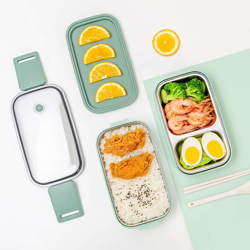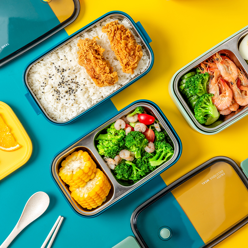 Collection plus 50 fruit forks (Contact customer service note) Blue double layer lunch box (PLA corn starch material health choice microwave oven heating) Green double lunch box delivery tableware (stainless)