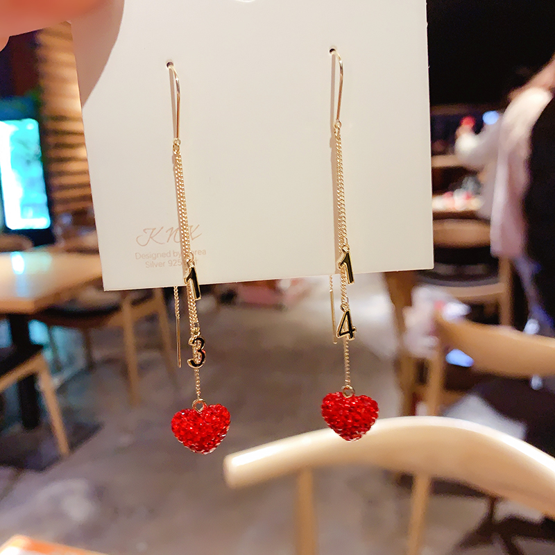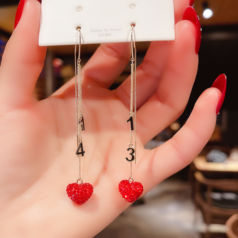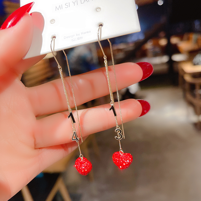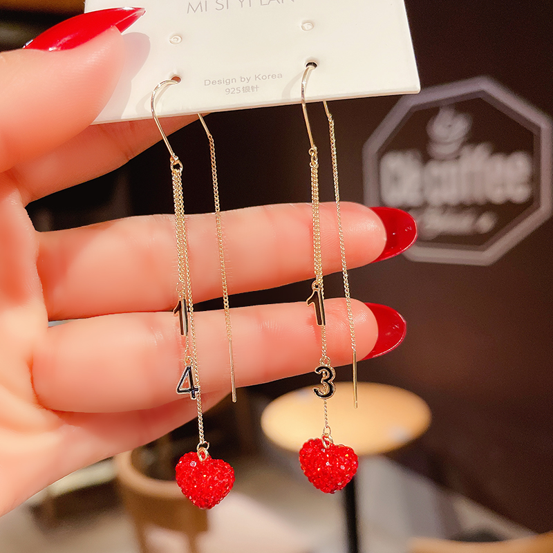 Temperament Net Red Burst 1314 Anti-loss ear Necklace Super Fairy long version of Love Flow Suearrings Red Chinese New Year's earrings