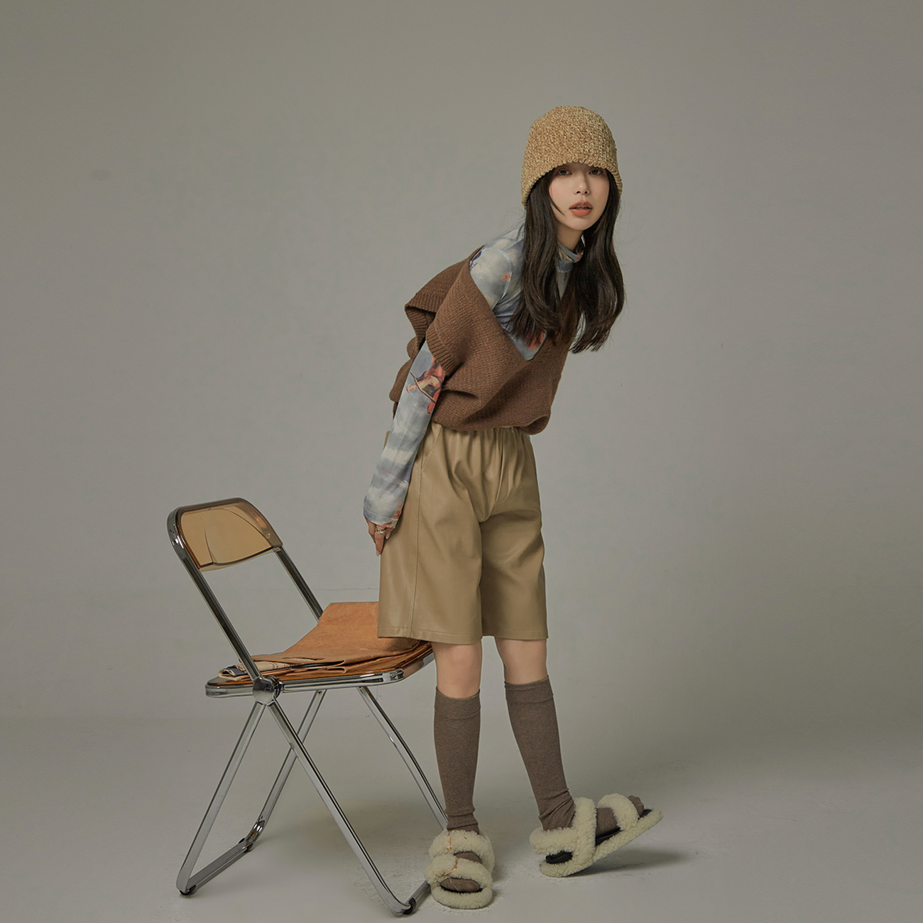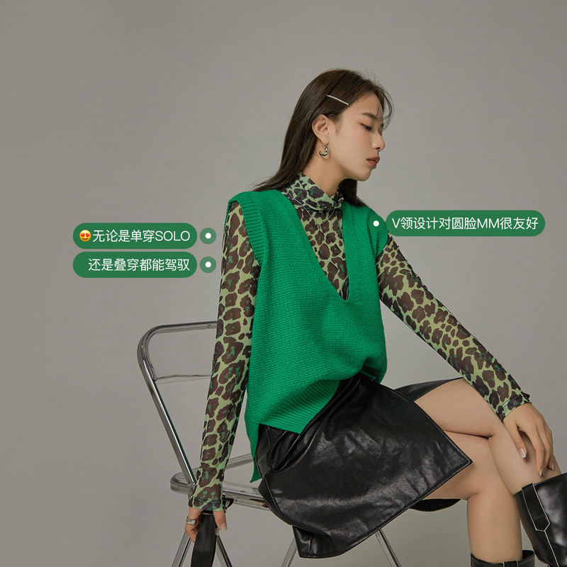 CHUU three-color Cup vest female 2021 new spring and autumn wear v-neck loose Korean sweater horse clip knitted vest