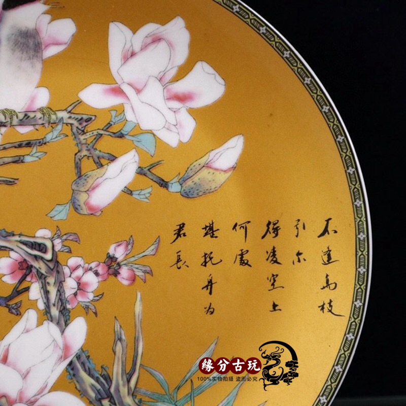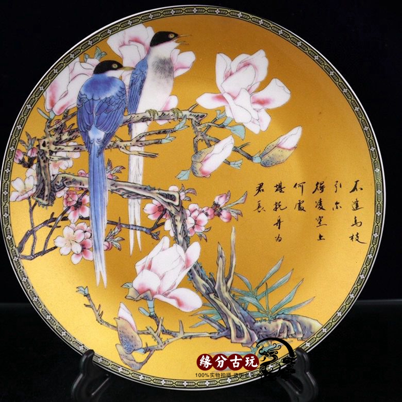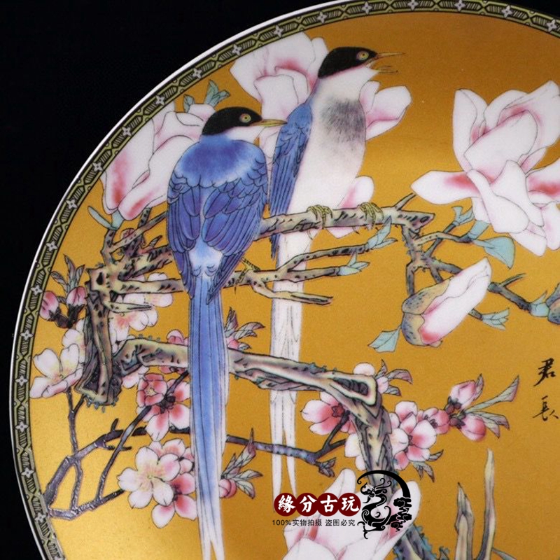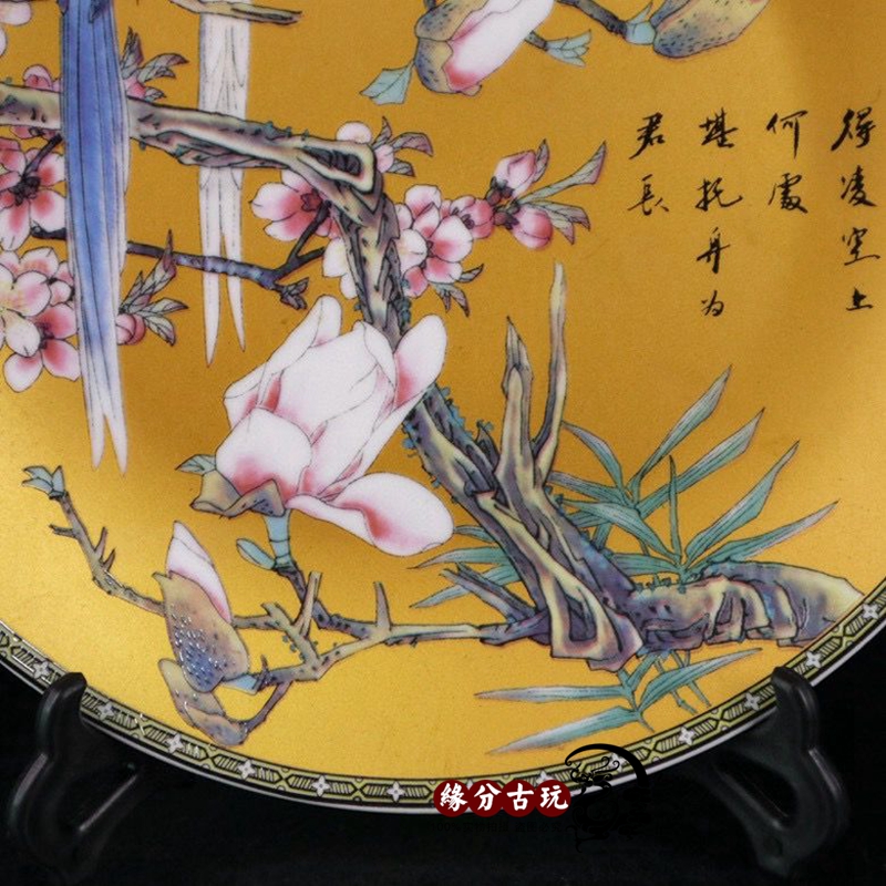 Jingdezhen ceramic ware antique yellow flower bird porcelain hanging disc pendulum disc decorated with plate decorations for old dishes-Taobao