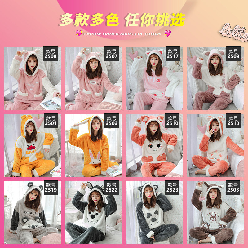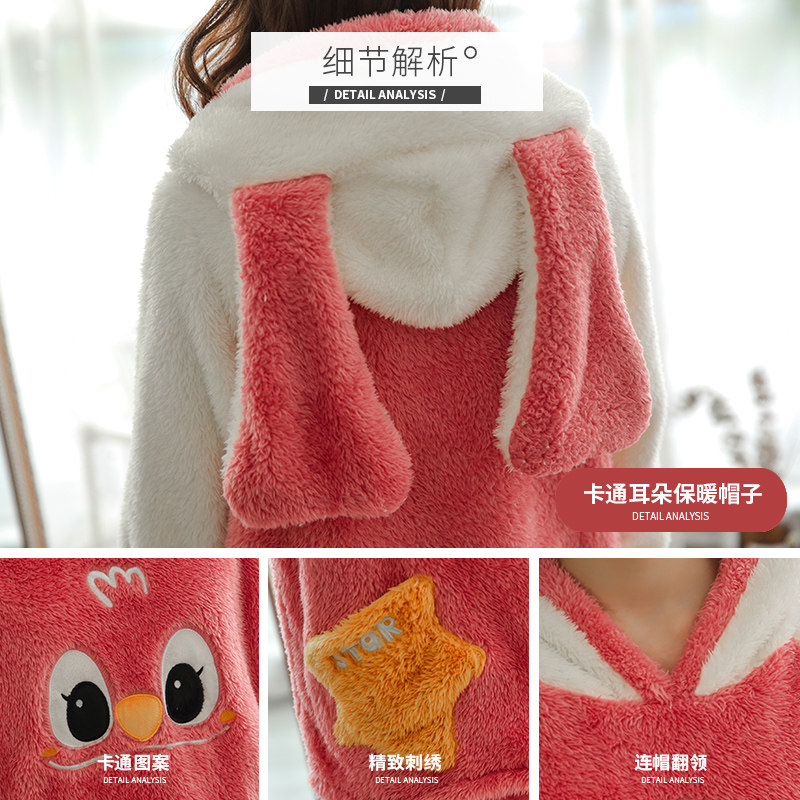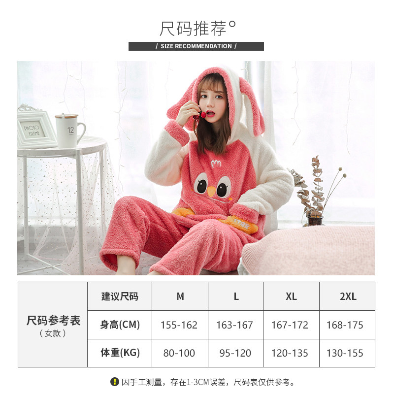 Coral fleece pajamas women fall/winter long sleeve padded warm plus velvet home clothing Korean version can go out leisure suit spring and autumn