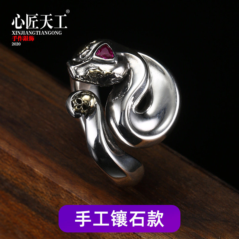 Snake ring inlaid with stone (pure silver inlaid with eye wrinkles) Snake Ring Succinct (pure silver inlaid with bronze eye wrinkles) Snake Ring Skeleton Inlaid Stone (pure silver inlaid with copper eye wrinkles)
