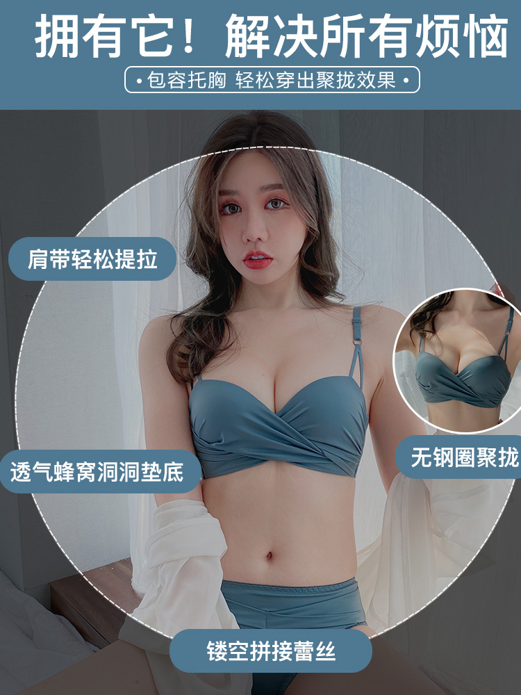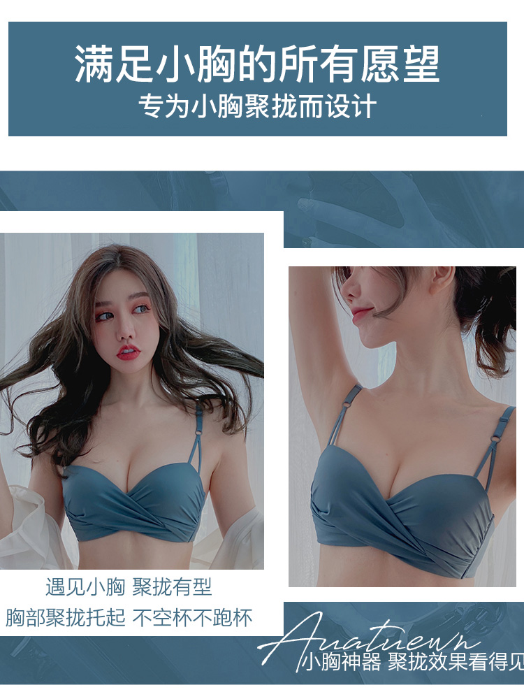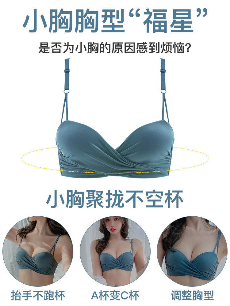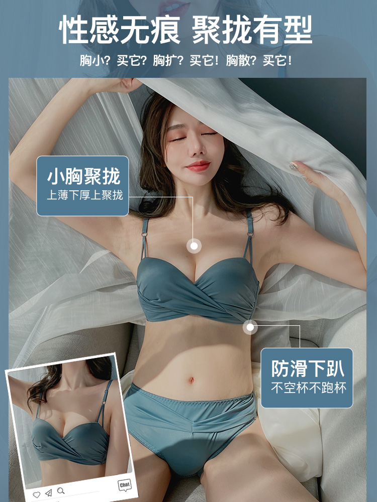 Underwear women's small chest gathered no steel ring bra set adjustable breasts anti-sagging seamless beautiful back red