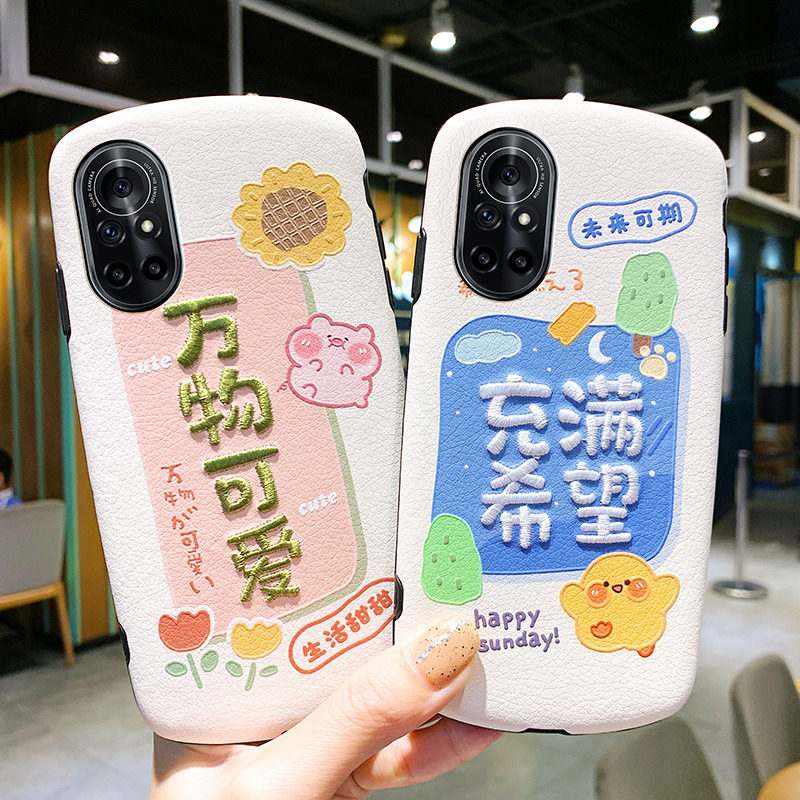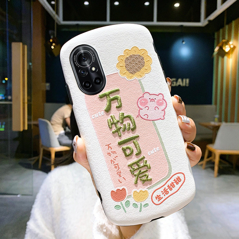 Huawei nova8 mobile phone protective case Huawei nova8pro protective case all-inclusive couple models leather pattern embroidery embossed anti-fall 5G silicone net red ins wind soft shell new products for men and women cute silicone