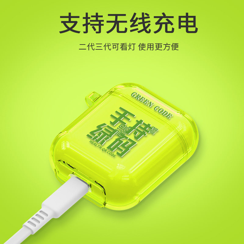 walkpro fluorescent green airpodsPro protective sheath Airpods headphone shell 3 generations 2 Silicone Wireless Bluetooth Pro transparent Apple a bit anxious Soft 1 generic Chaolai