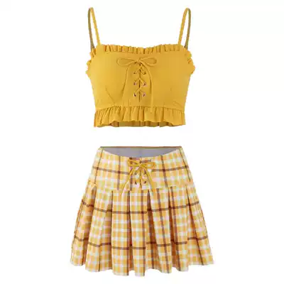 Swimsuit 2020 new hot spring student hipster sexy thin chest gathered two-piece skirt swimsuit women