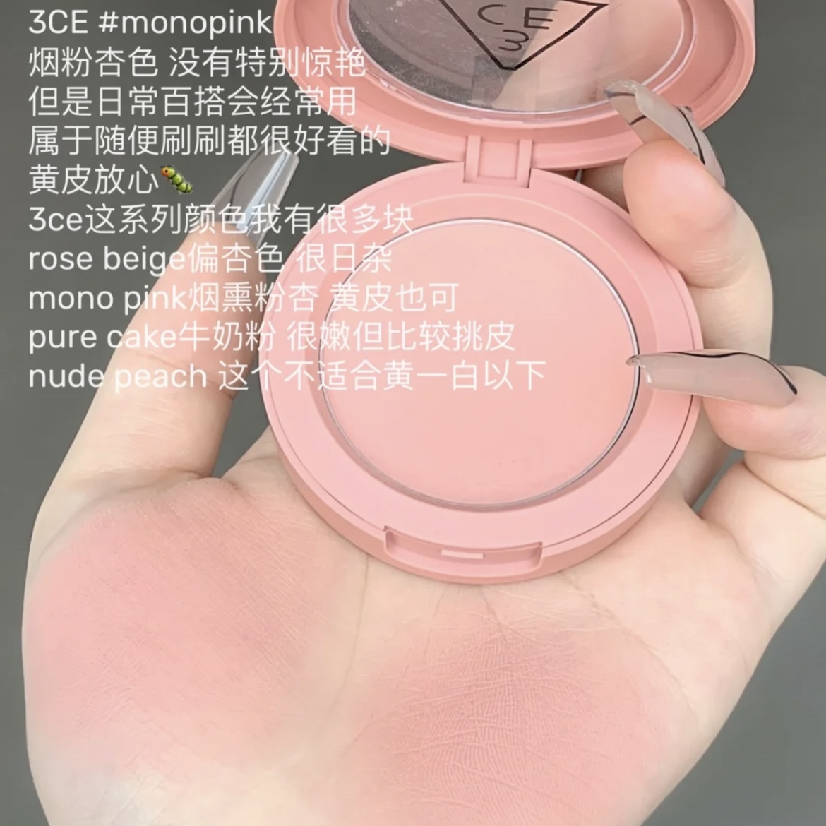 3CE monochrome blush naturally ROSE BEIGE repair pink with high light shadow of dirty orange peach color