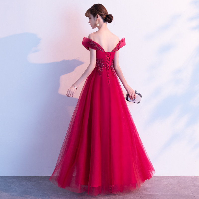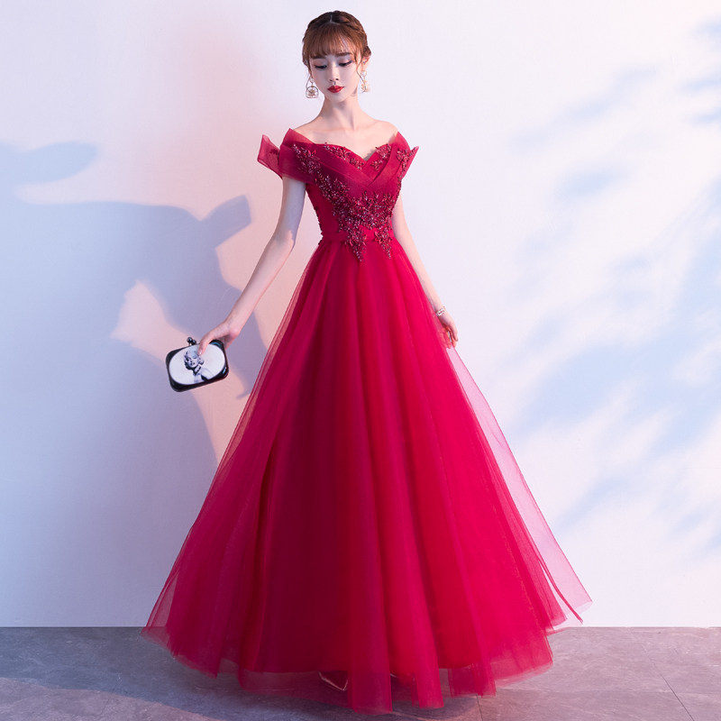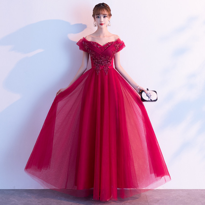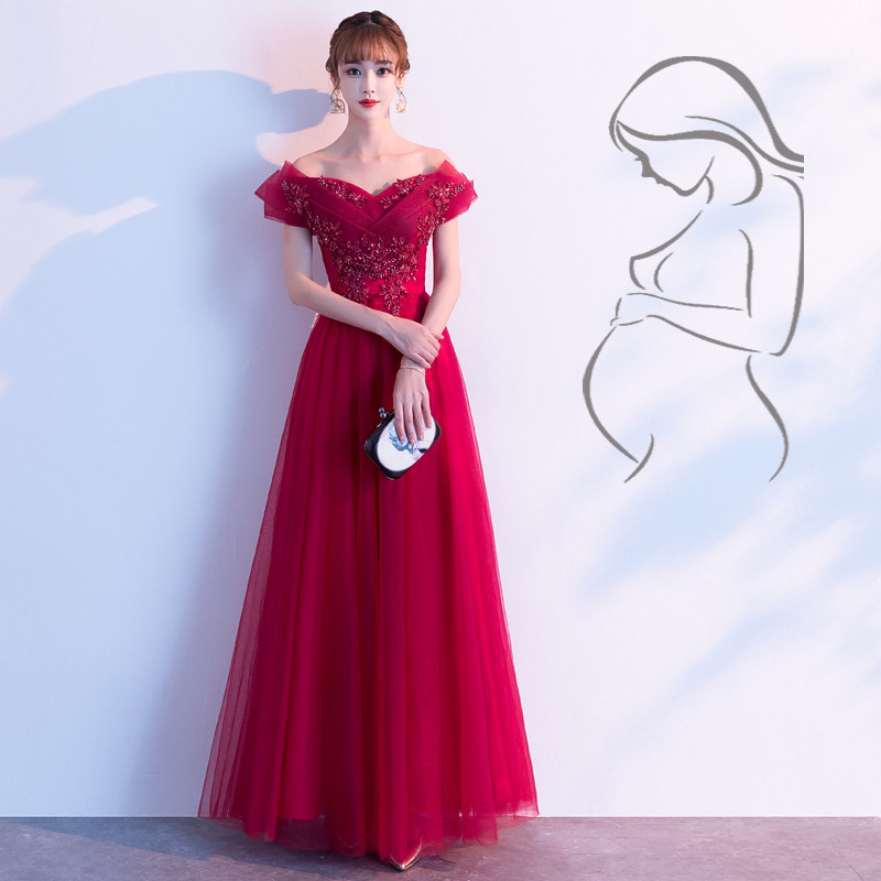 Straight Shoulder Toast Dress Bride 2021 New Pregnant Woman Wedding Gown Dress Girl Wine Red Engagement Advanced Sensation Slim