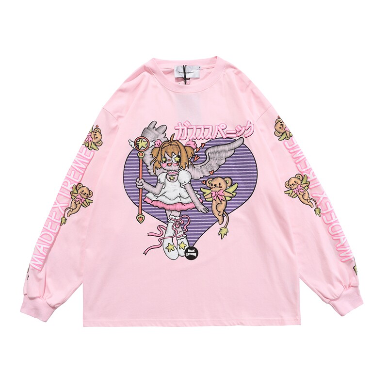 Love cartoon bear pattern long-sleeved thin section thick cotton T women's new thin Foreign school vintage Hong Kong style hot girl tide