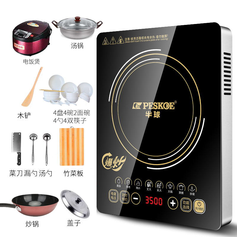 3500W stainless steel single stove set one (soup pot set) package two (no pot lid) set two (wok set) set three (wok + soup pot) set four (wok + kitchen knife cutting board) set five (wok + soup pot + knife board) set six (non-stick pan + soup pot) set seven (non-stick pot + soup pot) set eight (non-stick pot + kitchen knife cutting board) set nine (non-stick pot + soup pot + knife board) set ten (Mandarin duck pot) set three + porcelain dishes set five + porcelain dishes set seven + porcelain dishes set nine + porcelain dishes set three + 5 liter rice cooker set five+ 5 liter rice cooker set seven + 5 liter rice cooker set nine + 5 liter rice cooker set five + 5 liter rice cooker + porcelain bowl set nine + 5 liter rice cooker + porcelain bowl 2200W hemispherical plastic stand-alone