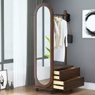 Solid wood coat rack multi-function hanger new Chinese full-length mirror clothes rack with mirror household wooden hanger