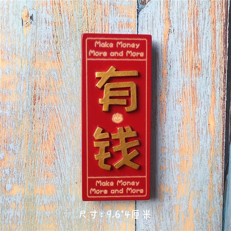 Plaque refrigerator sticker magnet Rich and thin eat good sleep good money wayward force peach blossom three-dimensional resin decoration