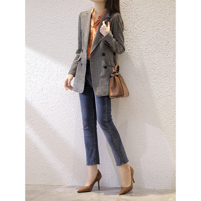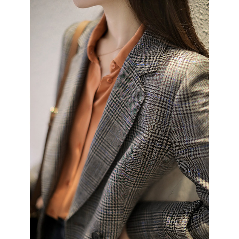 Plaid wool suit jacket Women's autumn winter 2021 new body slim Inn wind thickened Little Western suit jacket