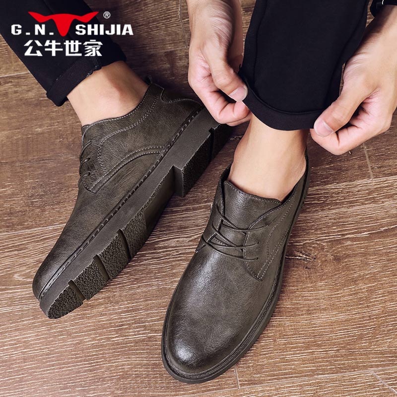 The Bull family Men's shoes Summer Korean version Trend 100 lap Inn Business Fashion Casual Genuine Leather Soft Leather Round Leather