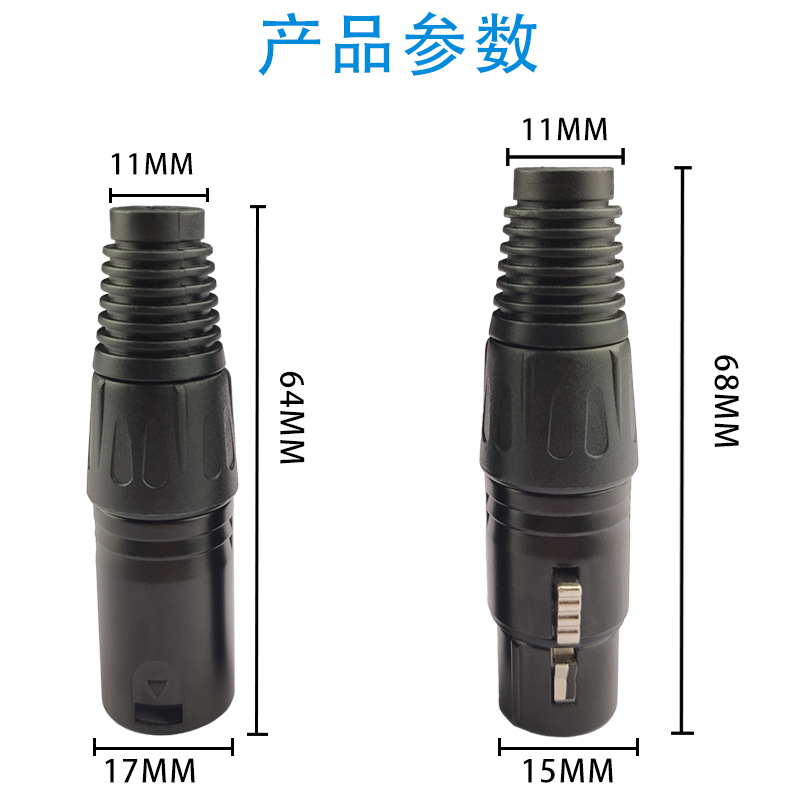 Professional 3-core Kalong male and female plug Canon head capacitor wheat microphone audio amplifier signal plug dazzling black Canon