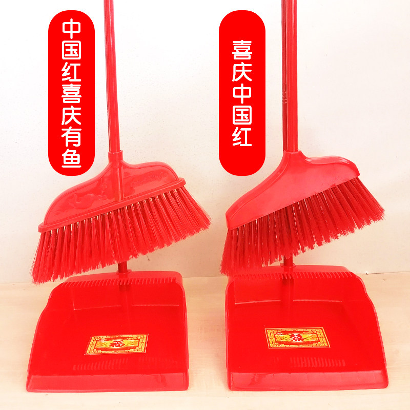 Big red wedding broom dustpan set wedding housewarming household single sweeping red broom broom dustpan combination