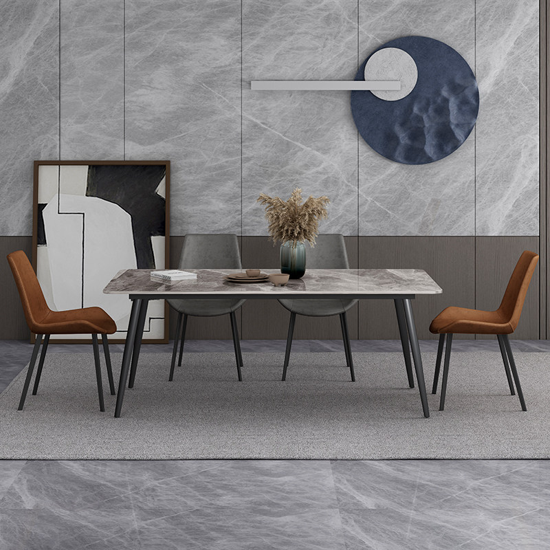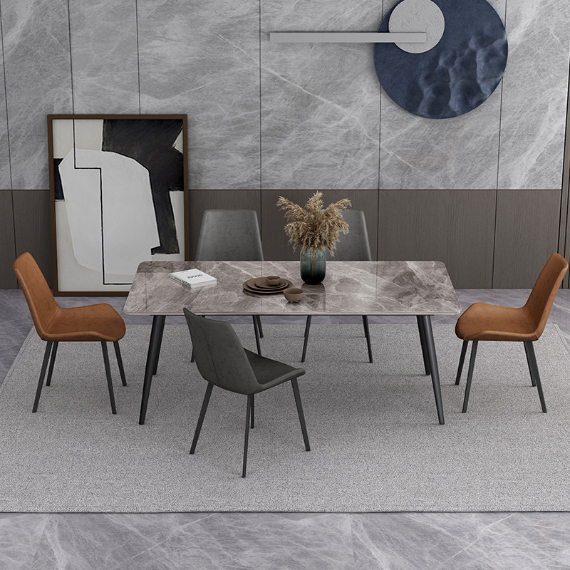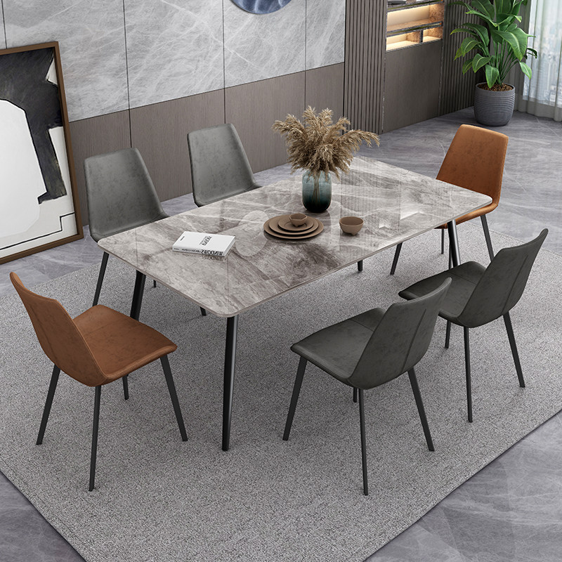 Nordic light luxury bright rock slab dining table and chair combination modern minimalist small apartment rectangular marble dining table home