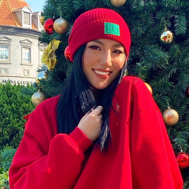 FIZZCOCO Cashmere Wool Beanie Women's Autumn and Winter Casual All-match Red Knitted Cold Hat Keeping Warm and Fashionable