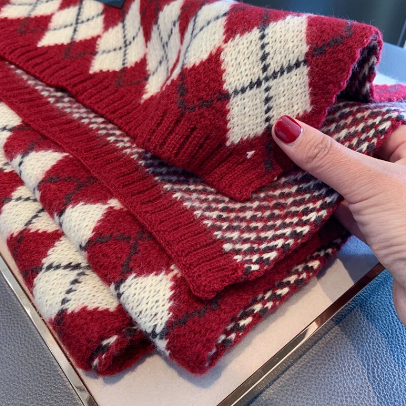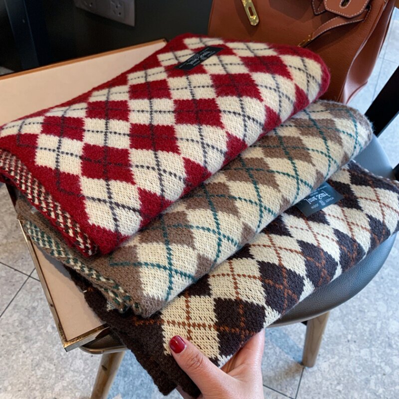 Outlets net red with the same scarf female 2022 autumn and winter new retro plaid knitted wool warm tide