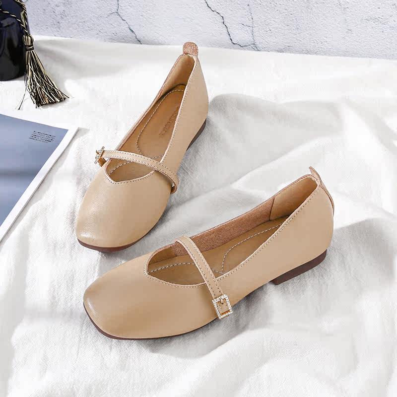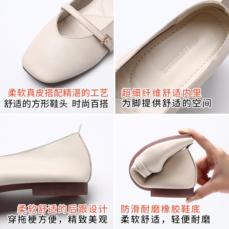 Flat bottom shoes 2022 new flat heel lined with light mouth single shoes female bullgluten bottom women's shoes genuine leather soft-bottom Marie precious shoes