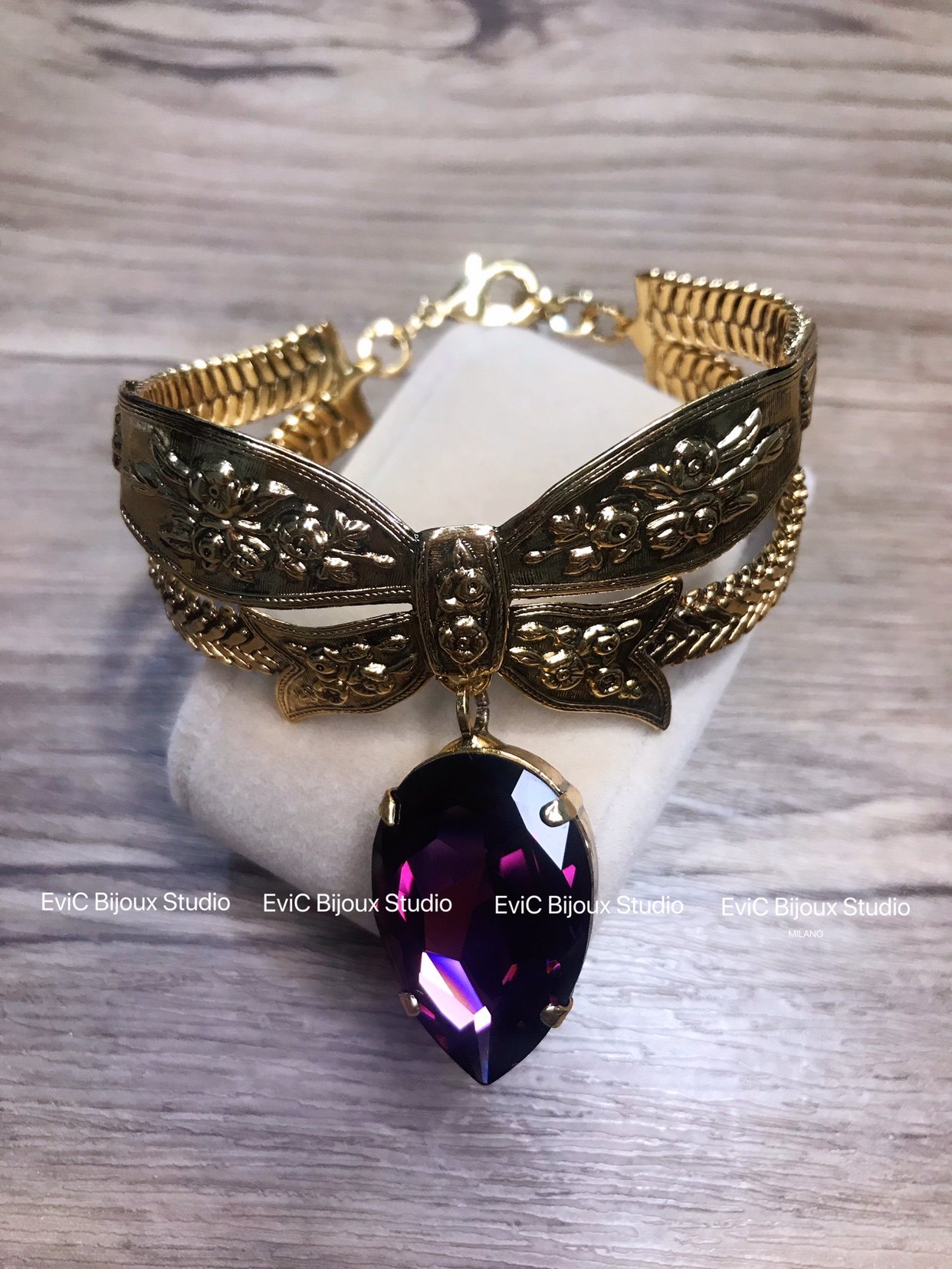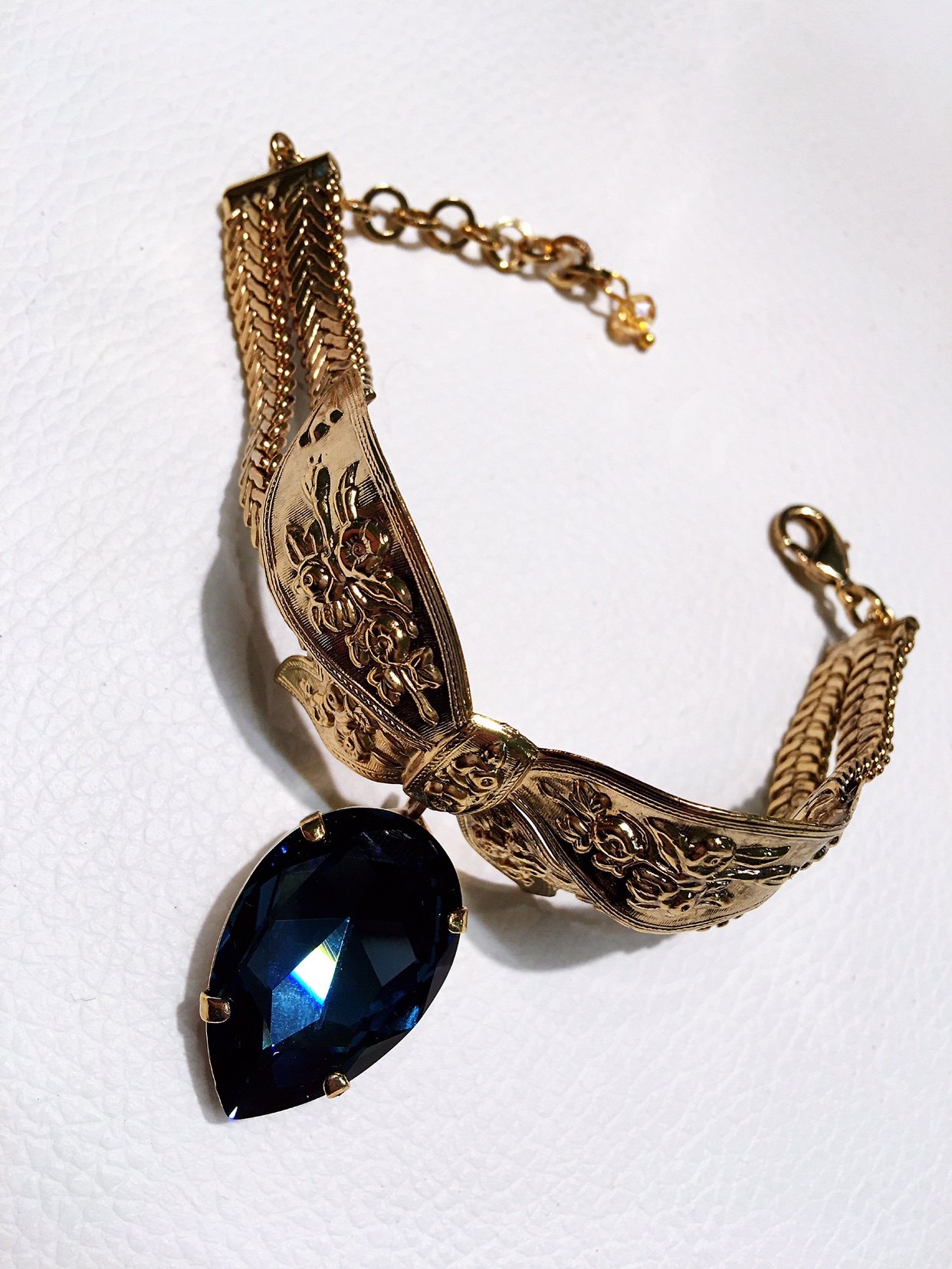 Big designer 24k gold plated high crystal butterfly bow bracelet not refunded