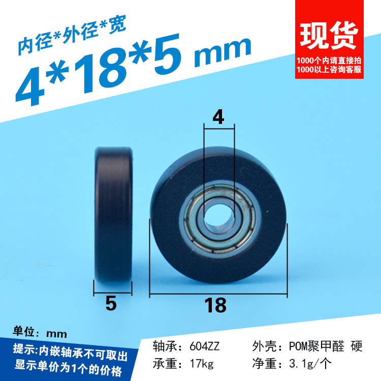 624ZZ bearing pulley wrap plastic guide wheel micro flat wheel drawers exhibition cabinet furniture pulley POM polyformaldehyde 4 * 18 * 5