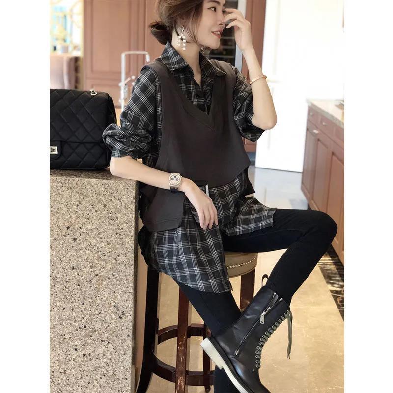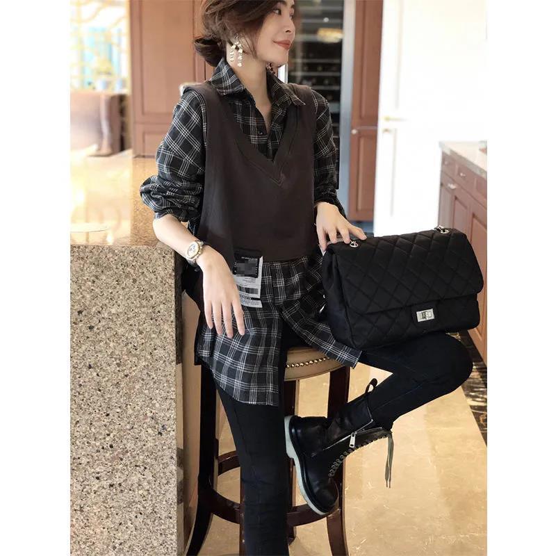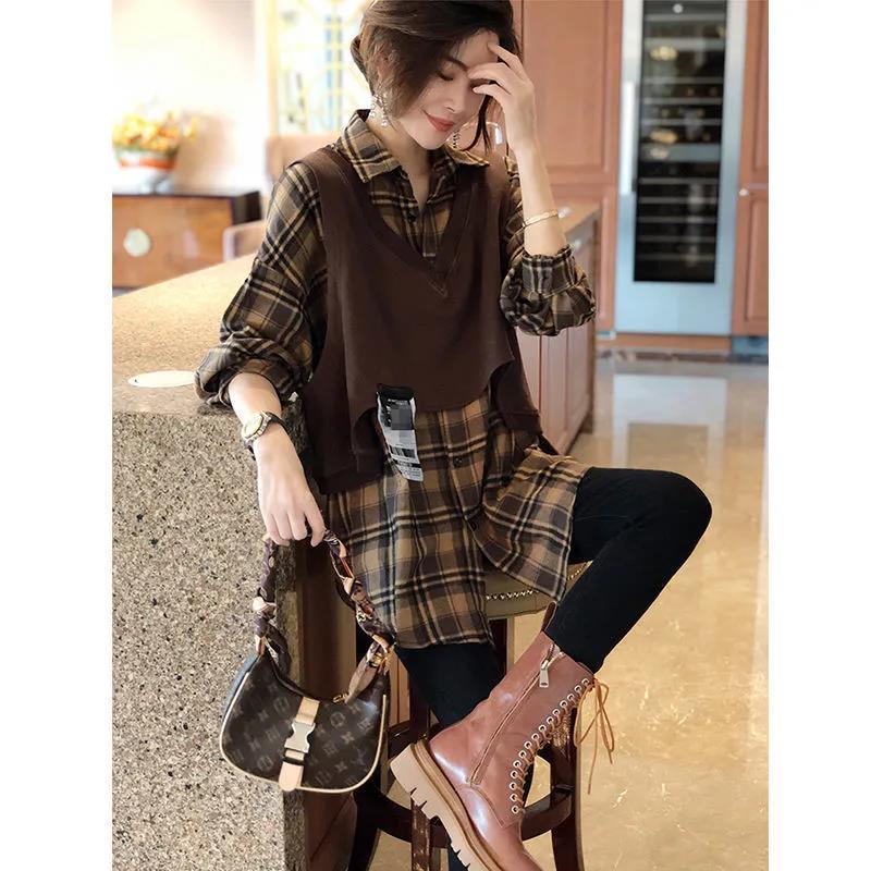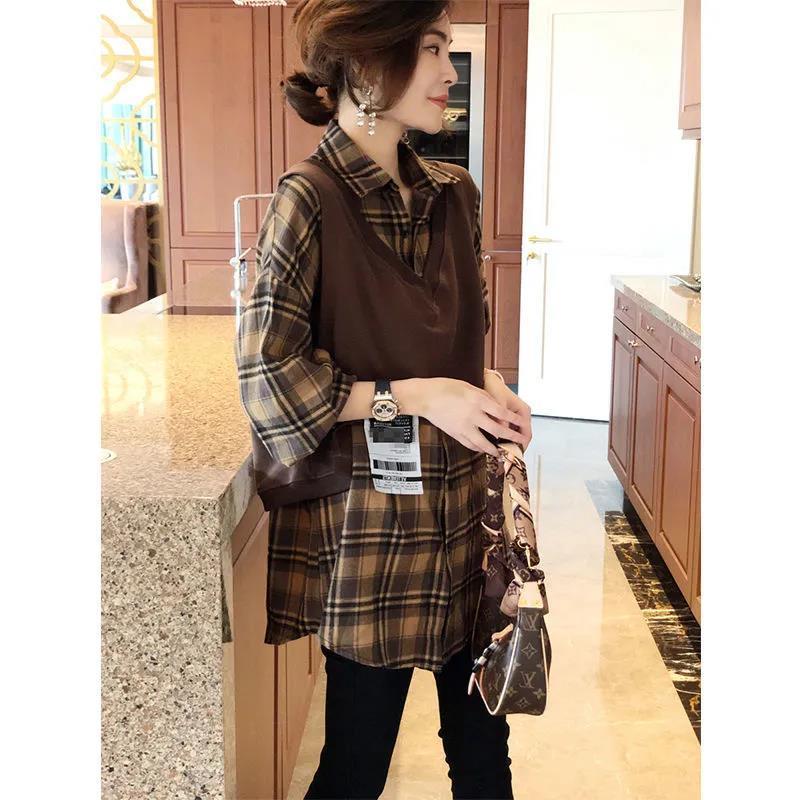 2020 early autumn new loose Machia shirts two sets of fashion retro plaid Eurogoods women's clothing