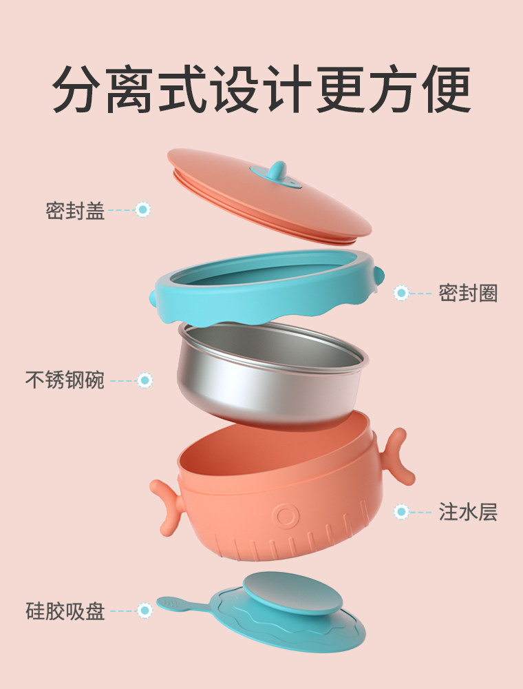 Davichi Baby Meals Deputy Food Bowl Insulation Bowl Water Injection Baby Cutlery Stainless Steel Anti-Burn suction cup