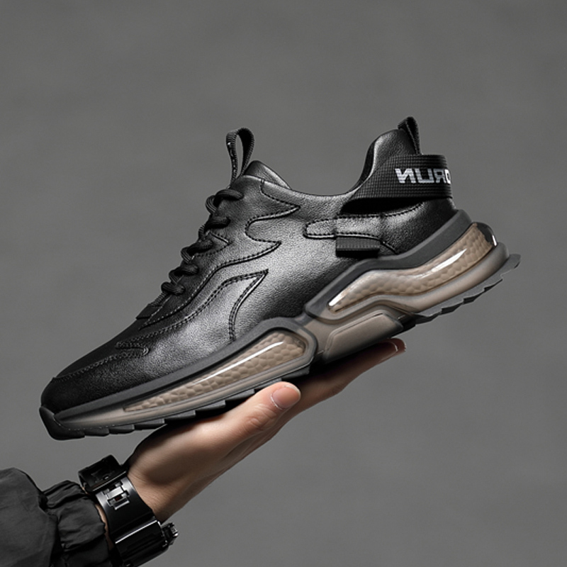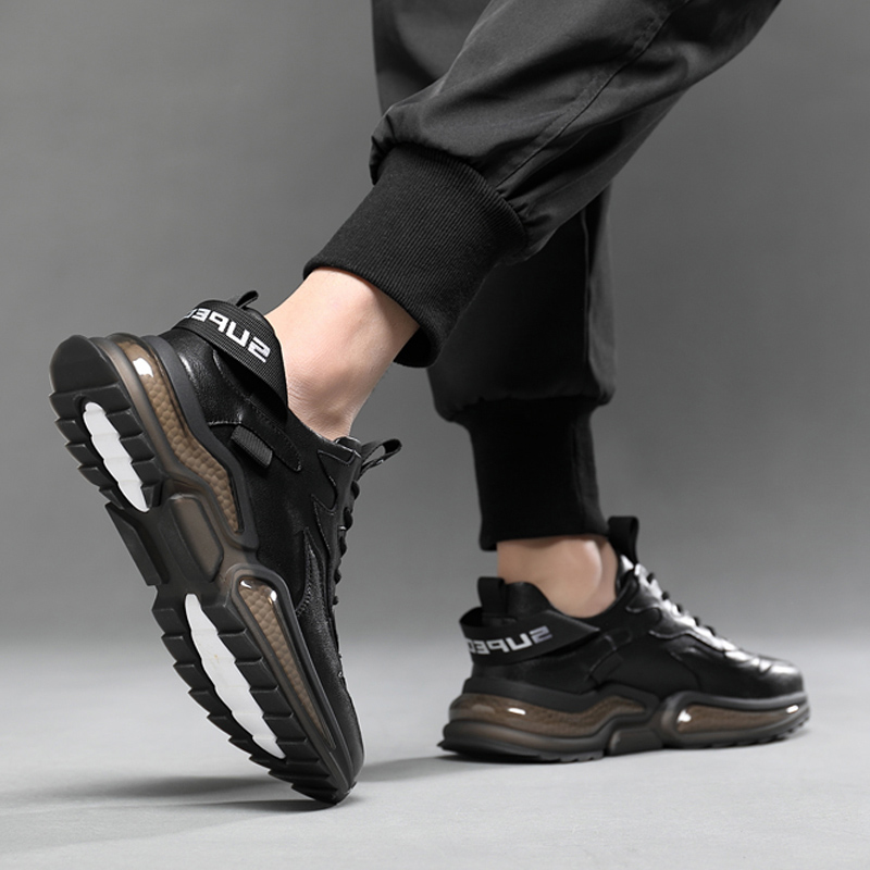 Shoes Men's Summer Sneakers Genuine Leather Retro Black Men's Shoes Han Prints 100 hitch for men's old daddy Shoes