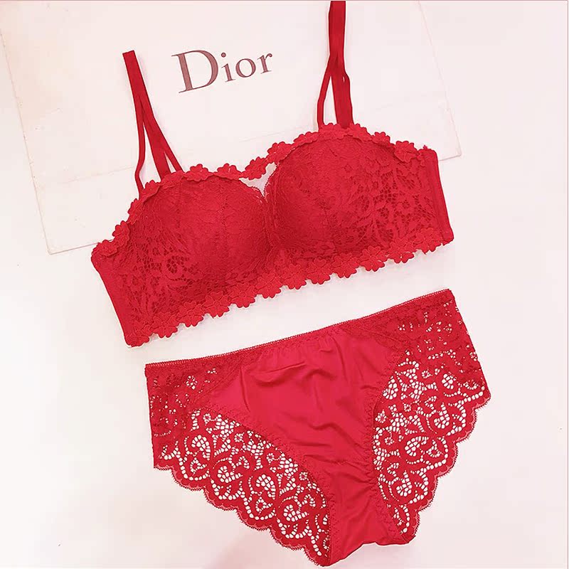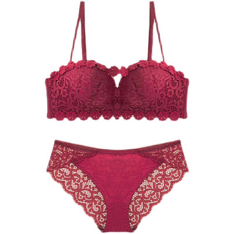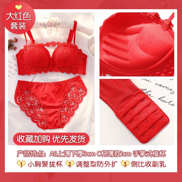Red lingerie suit Benny year of marriage Bride bra genus Tiger no steel ring small breasts Gathered Red Lingerie Underwear