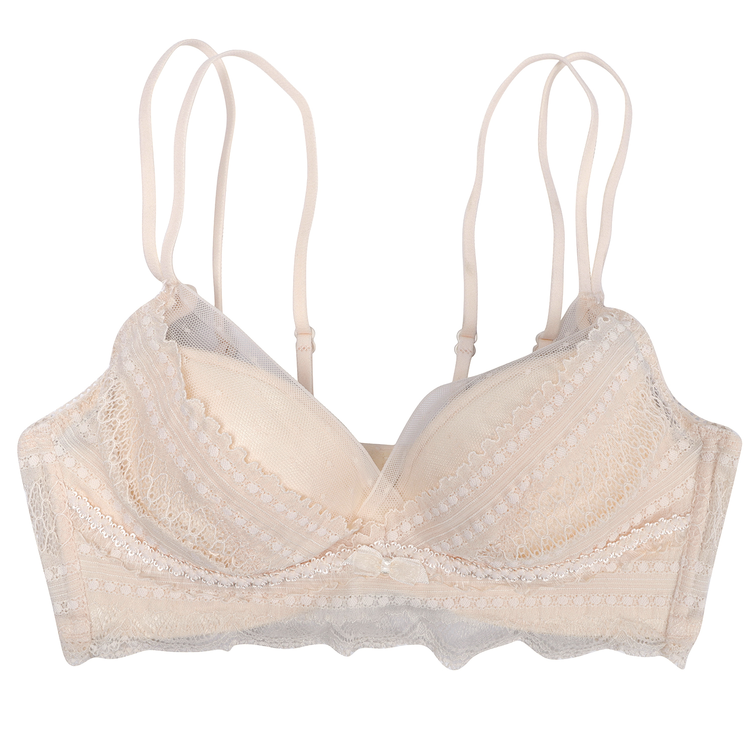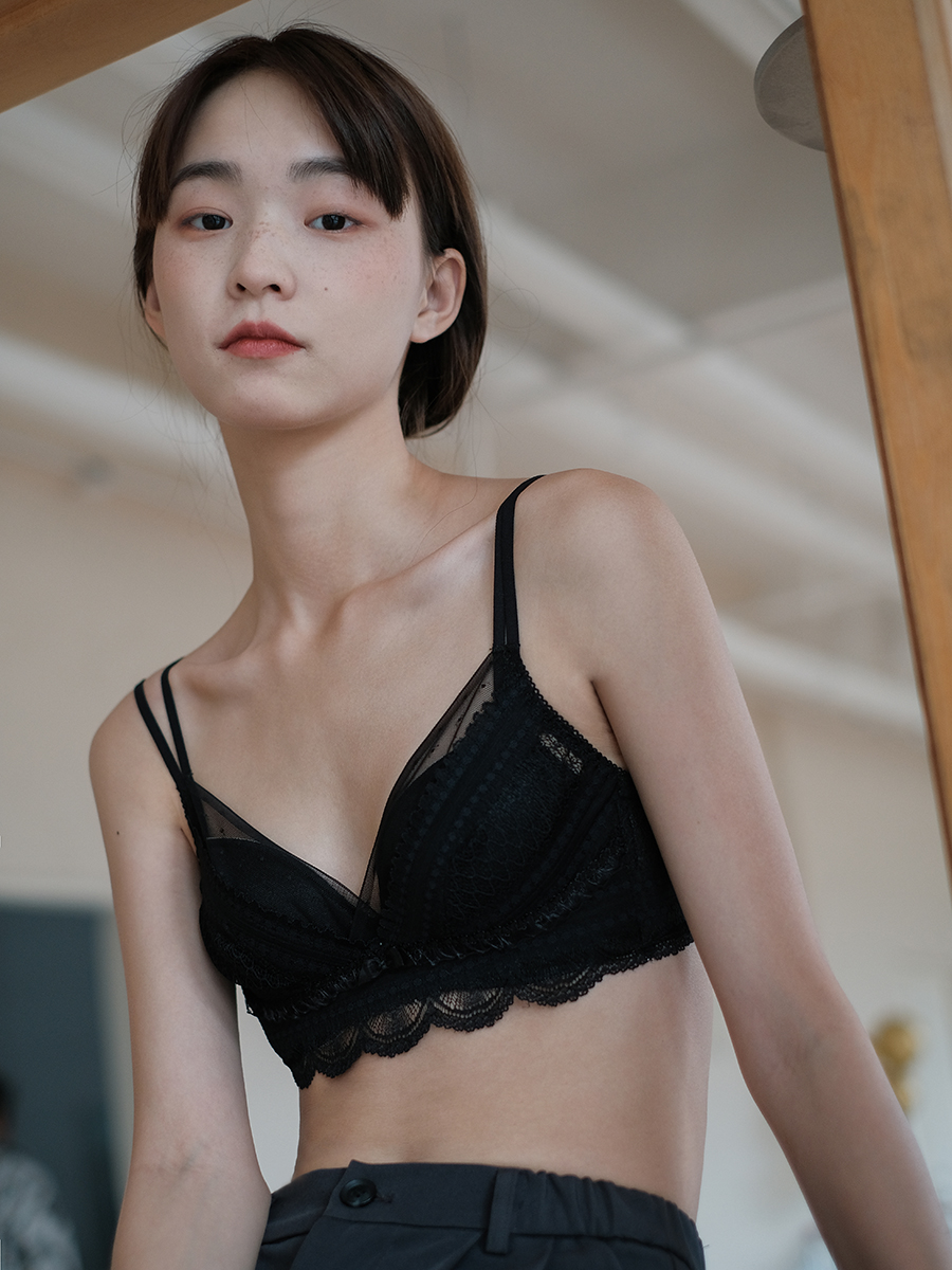 Xinbang help Bra sexy lace crochet bra double shoulder strap small chest gathered on the top bra underwear women's no underwire