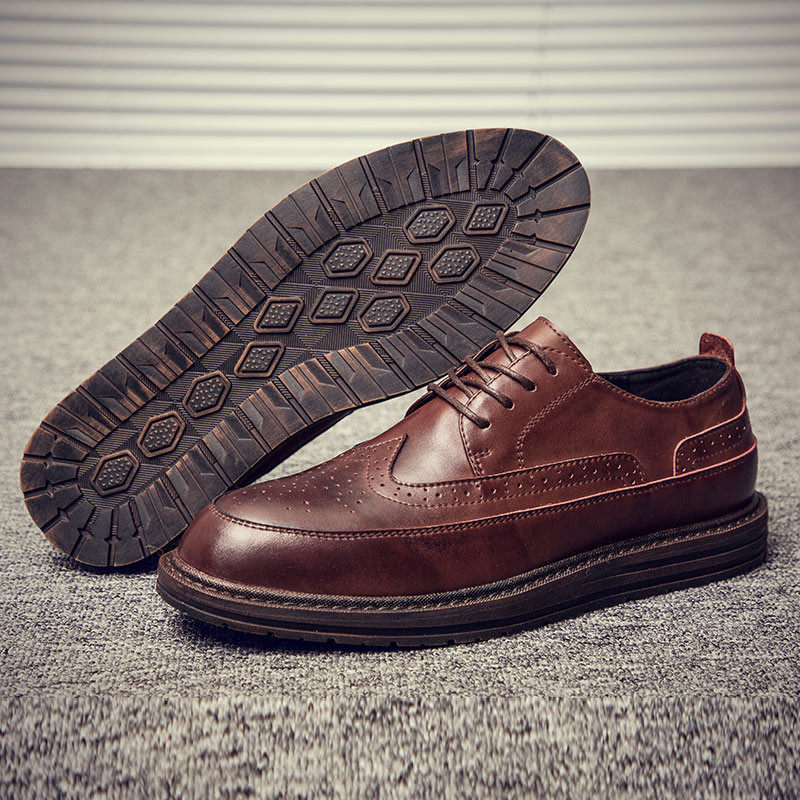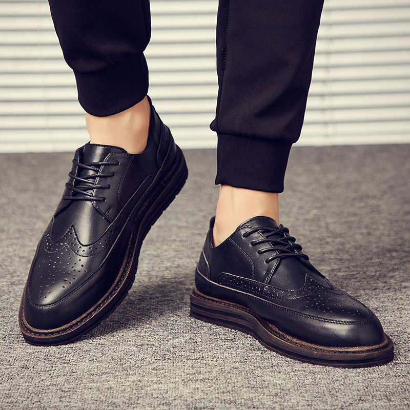 2022 autumn new brogue men's shoes Korean version business casual dress shoes British thick-soled leather shoes men's fashion