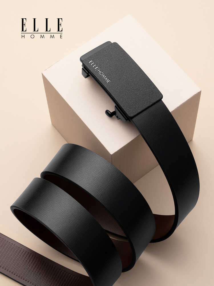 French ELLE HOMME men's belt men's leather automatic buckle young people's trouser belt men's cowhide belt trendy brand