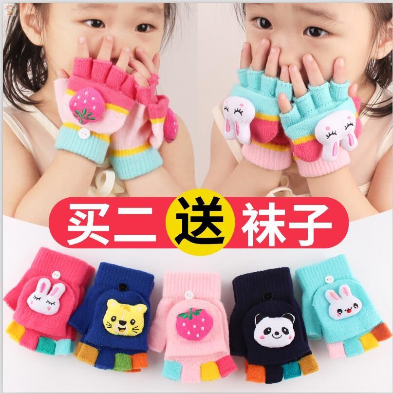 Primary school students' gloves winter homework female cute children 3-5-8 years old and above are convenient to write and show fingers for big children