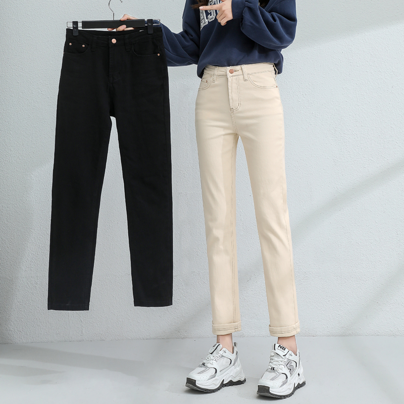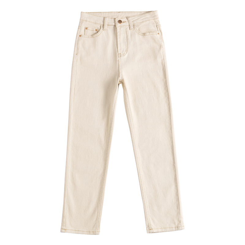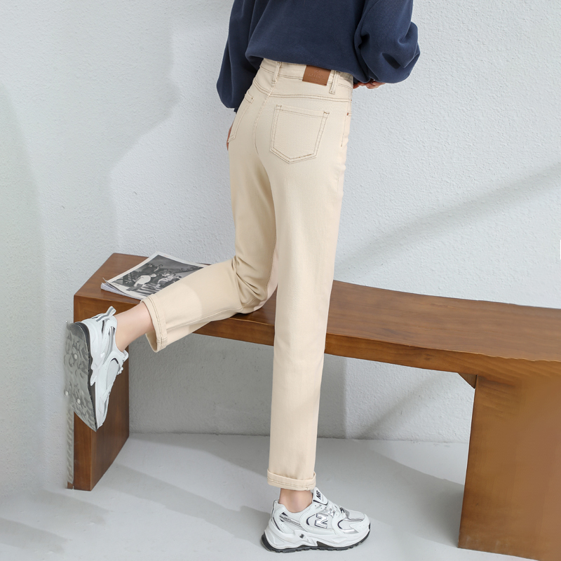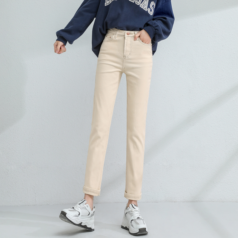 Almond Color Straight Drum Jeans Woman Spring Dress 2021 New Korean Version High Waist Loose Slim Rice White Smoke Pipe Women Pants