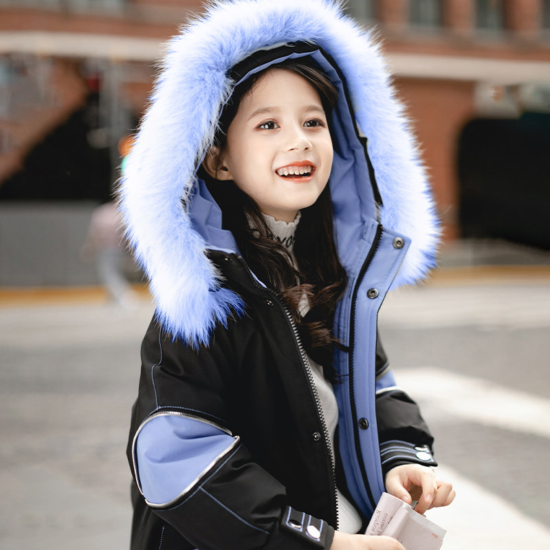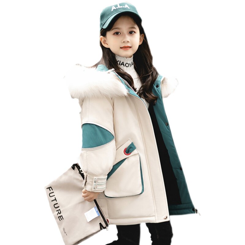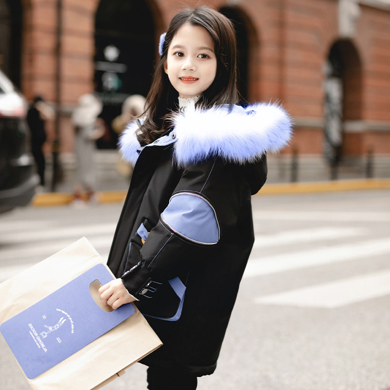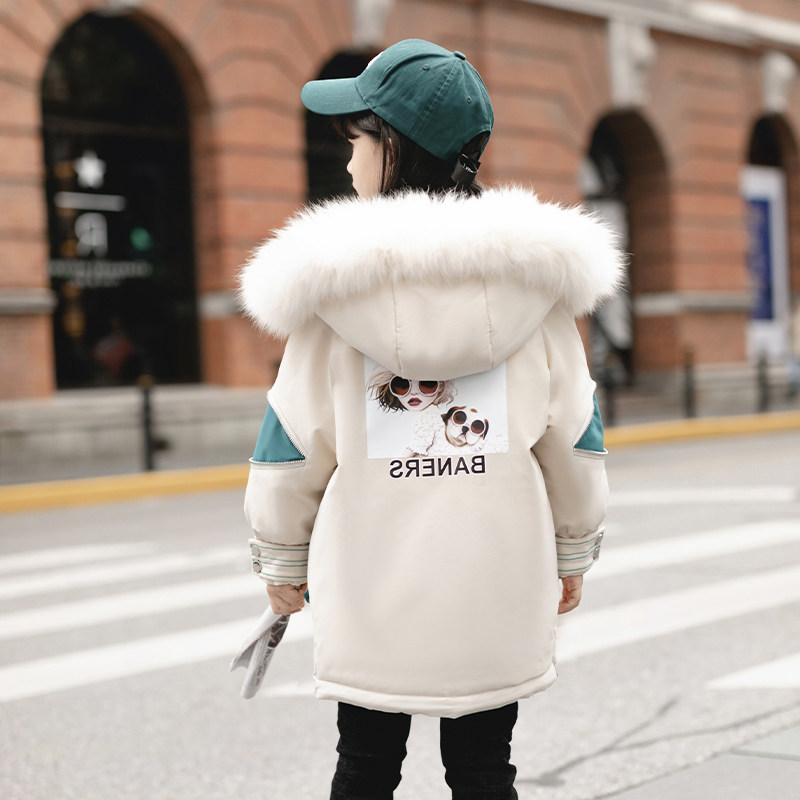Hong Kong children's cotton coat pie overcomes 2021 new Western style Korean version girls' medium and long version thickened down padded jacket
