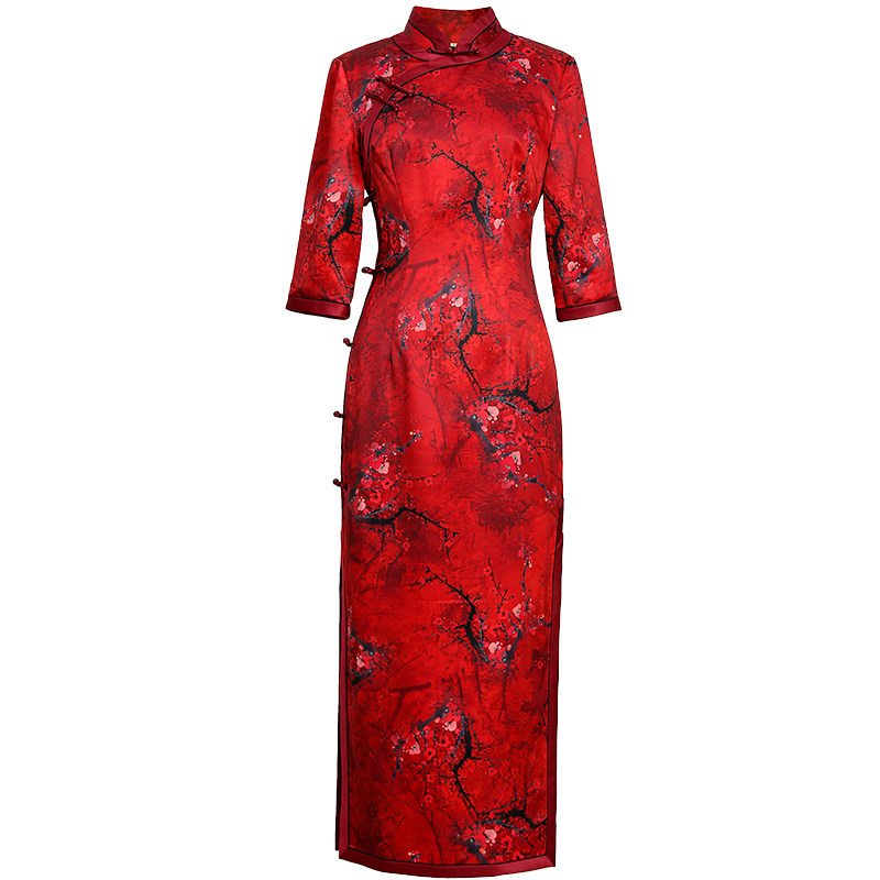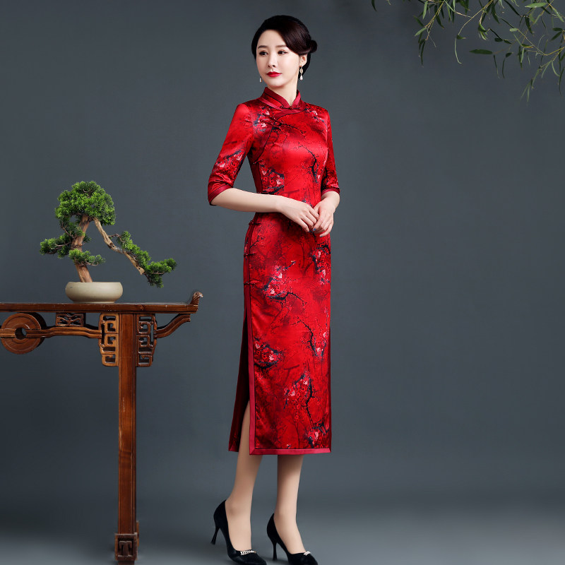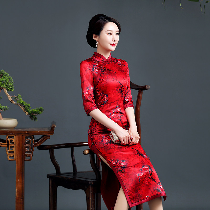 Red high - end flagrobe 2022 spring and autumn new fix slim wedding mom dress noble improved dress