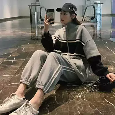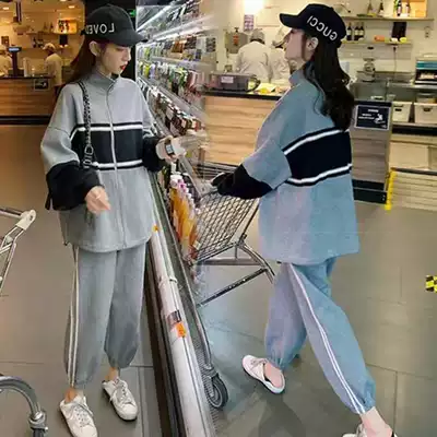 Pregnant women's spring suit Net red personality small trendy mother sports spring and autumn fashion casual out two-piece suit