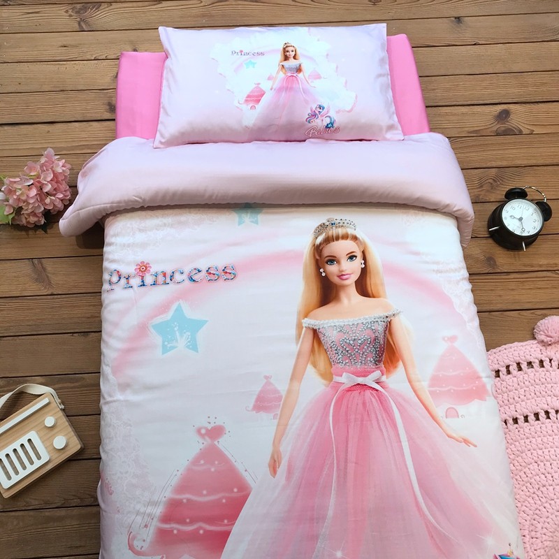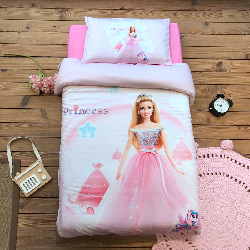 Children's cotton pure cotton Barbie princess mermaid girl 60s Xinjiang long-staple cotton three-piece four-piece quilt cover