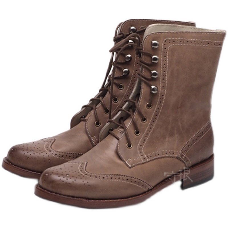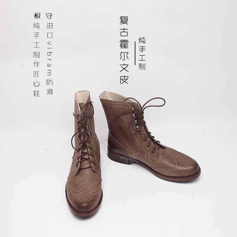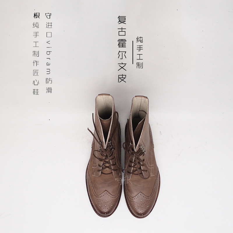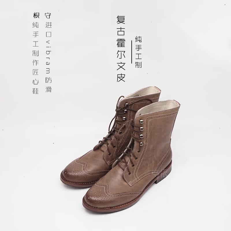 Horween Holvin white core retro polished apricot brown carvings looking for high cylinder men's boots pure handmade Goodyear keeper