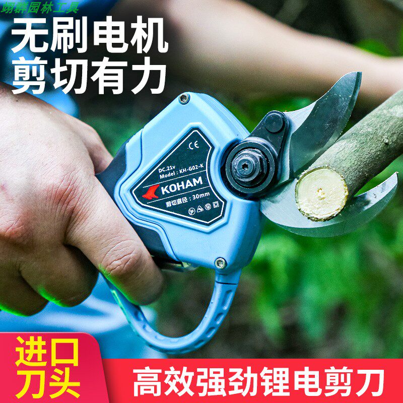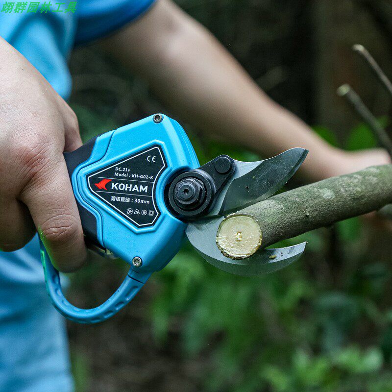 KOHAM 3cm lithium electric automatic trimming shear tree rough branch scissor belt anti-shear (2 batteries)