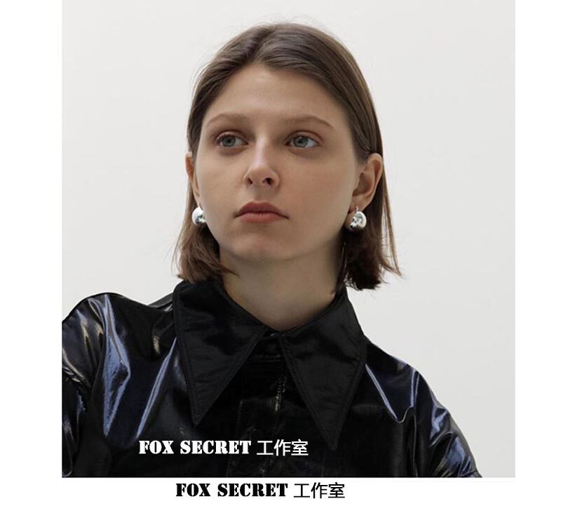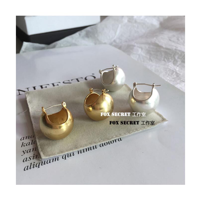 European and American lukewarm wind round ball earrings minimalist spherical earrings Savi recommend French style retro 925 silver needle anti-allergy