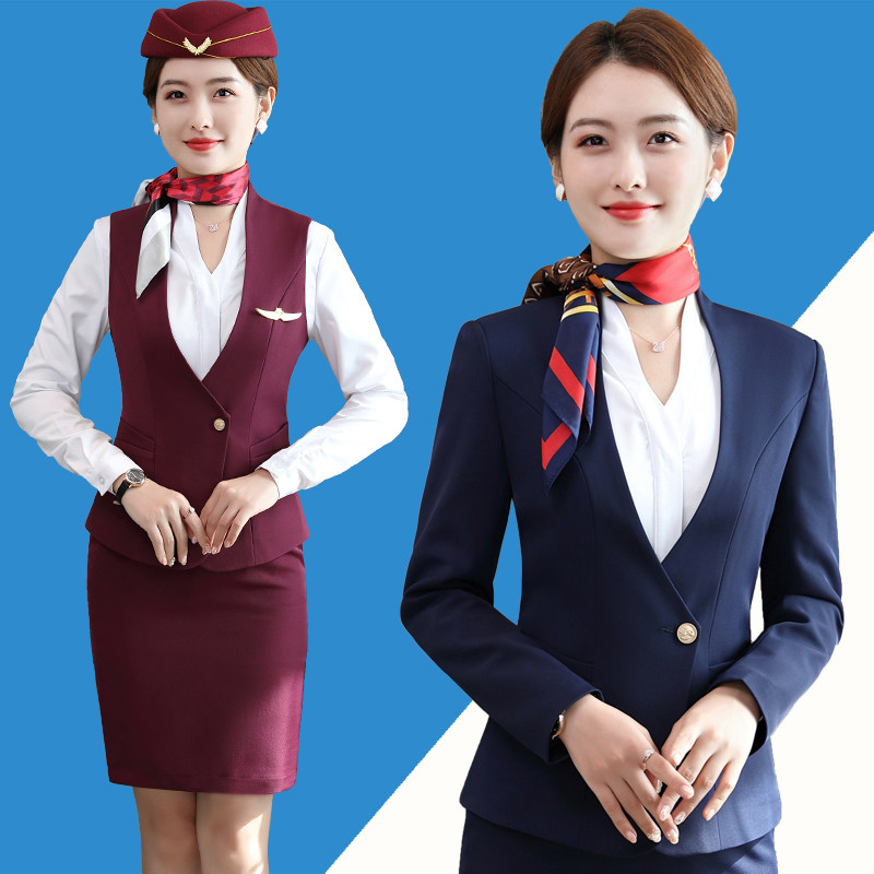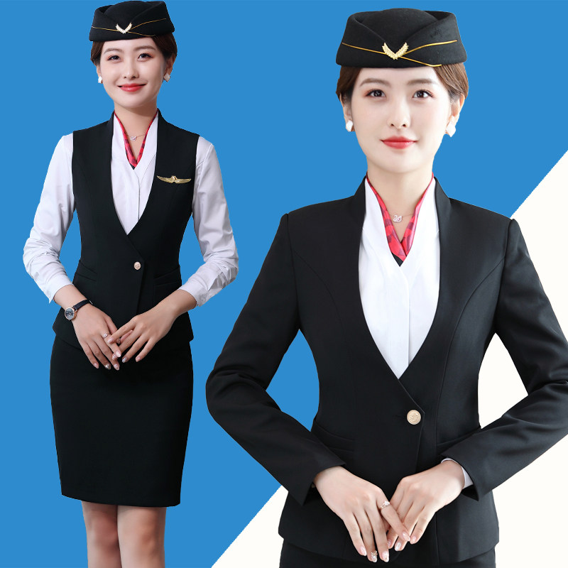 High-end stewardess professional suit femininity aviation high-speed rail flight attendant uniform customer service reception work attire
